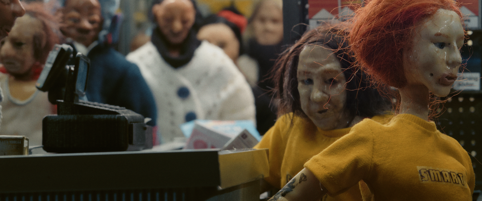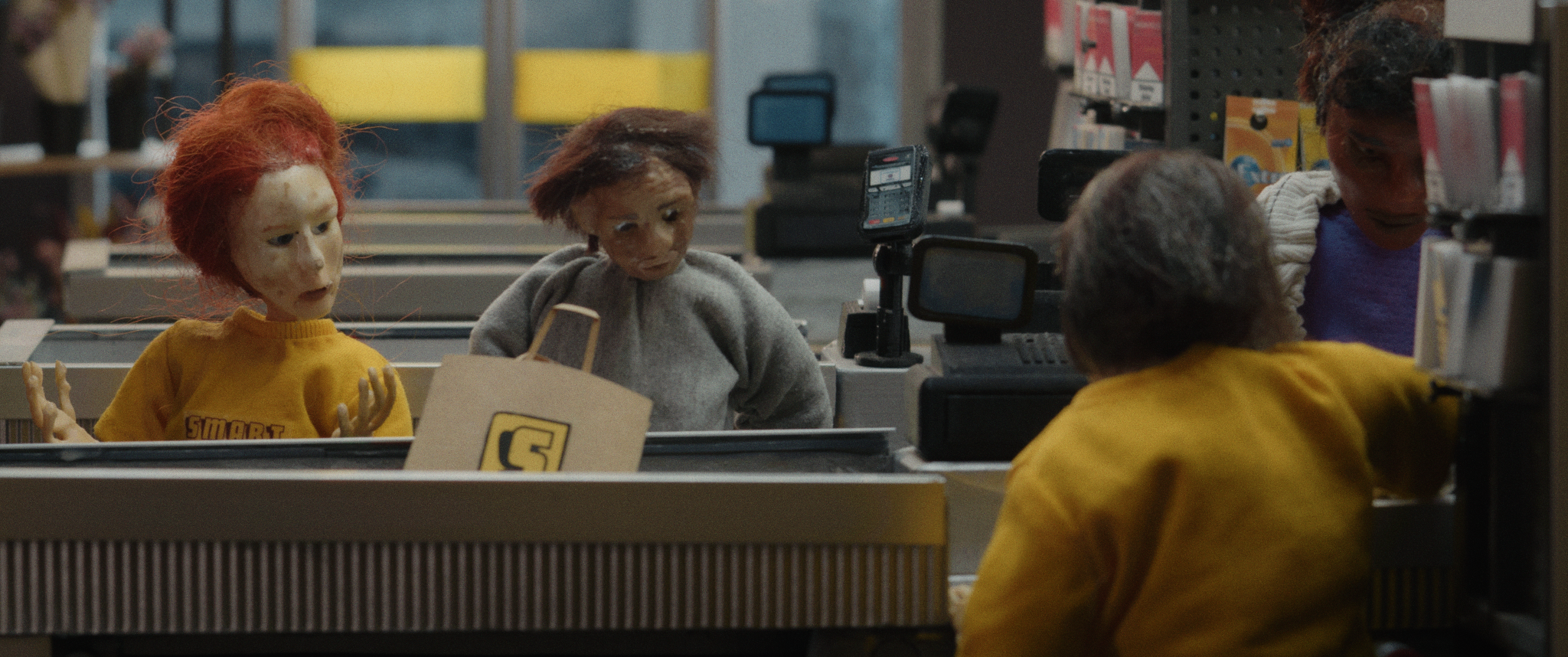 Eleni has been promoted to the position of supermarket manager. She knows this means that she has to start pushing her coworkers harder and harder in order to make them work as efficiently as possible in the least amount of time. If this means that the cashier can’t take a bathroom break because of long supermarket queues, or that one of her closest colleagues has to hide her pregnancy in order to keep her job, so be it. Eleni herself recently had a baby, which makes her all the more ready to do what it takes to climb the corporate ladder. Otherwise, she may be forced to join the homeless people that live off of the food thrown out as garbage by the supermarket, food that is still actually good. Through a series of anecdotes involving supermarket employees and their manager Eleni, who keeps pushing them to their breaking point, Swedish dramedy The Store by director Ami-Ro Sköld depicts an insightful and sociologically informed study of labour relations within the neoliberal economy, and by doing so surprises the viewer with its genre innovation. A substantial part of the film was executed using the technique of puppet animation, which is is interspersed with live action scenes. Sköld thus achieves a Brechtian distancing effect that allows us to take a sober look at the situation, while paradoxically fuelling the empathy we feel towards the characters. Through a series of tragicomic vignettes with excellent non-proffesional actors, Sköld arranges a disturbing composite of exploitative and self-exploitative relations in late capitalism – The Store is an ambitious yet flawlessly executed piece that will make you feel uncomfortable next time you step foot in your local supermarket. (DP)