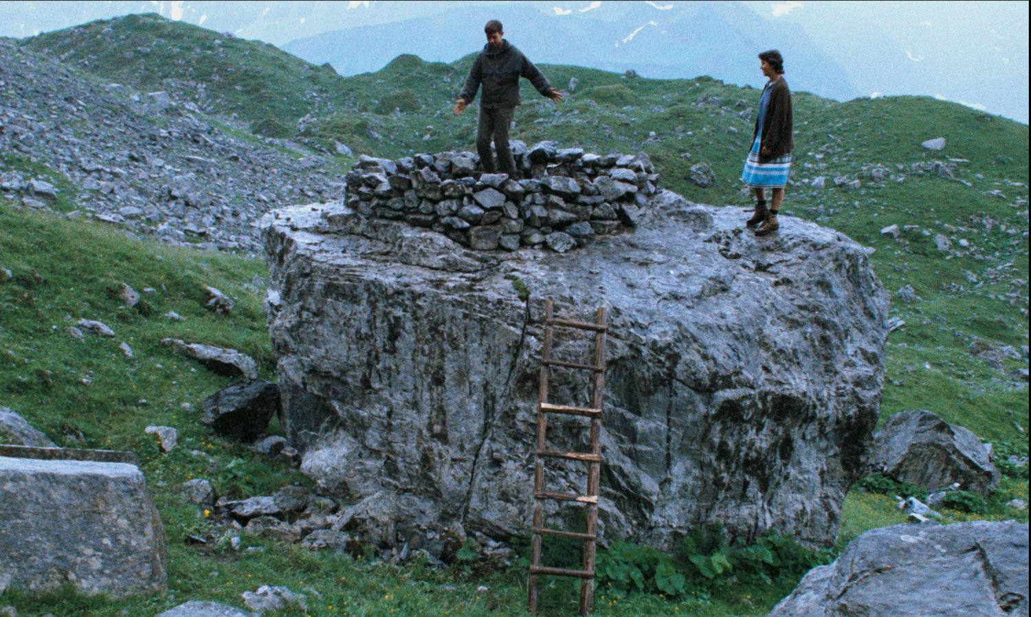 Murer dekonstruira alpsku idilu, ambijentirajući usred njezinih spektakularnih vrhunaca, grčku tragediju ljubavi i smrti. Precizno skicirani likovi djeluju poput arhetipova suvremenog svijeta. U fokusu je zabranjena incestuozna veza brata i sestre koji žive na planinskoj farmi u kraju u kojem se komunikacija sa susjedima odvija uz pomoć znakova i dalekozora. Brat je nijem i eksplozivan, istražujući zrcalima šutnju koja ga okružuje. Sestra sanja kako će postati učiteljica i pleše uz zvuke tranzistora koji će on ubrzo razbiti. No kad dođe zima, s kojom brat ulazi u stadij puberteta, između njih se rađa ljubav. Film je svojevrsna sinteza Murerovih opsesija: konflikt oca i sina, nemiri odrastanja, bijeg, realizacija identiteta, evokacija arhaičnih života. Riječima samog Murera: „Htio sam ispričati linearnu priču, poput grčkih tragedija u kojima unaprijed znamo što će se dogoditi. Nije u pitanju geografski determiniran Heimatfilm. Prije je u pitanju slijed slika koje je snimila živuća kamera i koje uslijed ograničenosti vizualnog jezika postaju cjelovite tek u imaginaciji gledatelja.“ (DP)